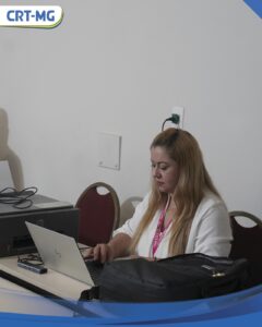 A Assistente Contábil Maria Júlia da Silva conduziu a apresentação do balanço financeiro do primeiro semestre deste ano, enquanto o Supervisor do Núcleo de Fiscalização, Carlos Eduardo Miranda, mostrou dados estatísticos e gráficos com o desempenho fiscalizatório do CRT-MG entre 2020 e junho de 2025. Apresentou ainda as regiões fiscalizadas, incluindo o mapa das cidades, os processos e o percentual de regularização de profissionais e empresas e, por fim, a contribuição do setor de Fiscalização da autarquia nas ações preventivas.