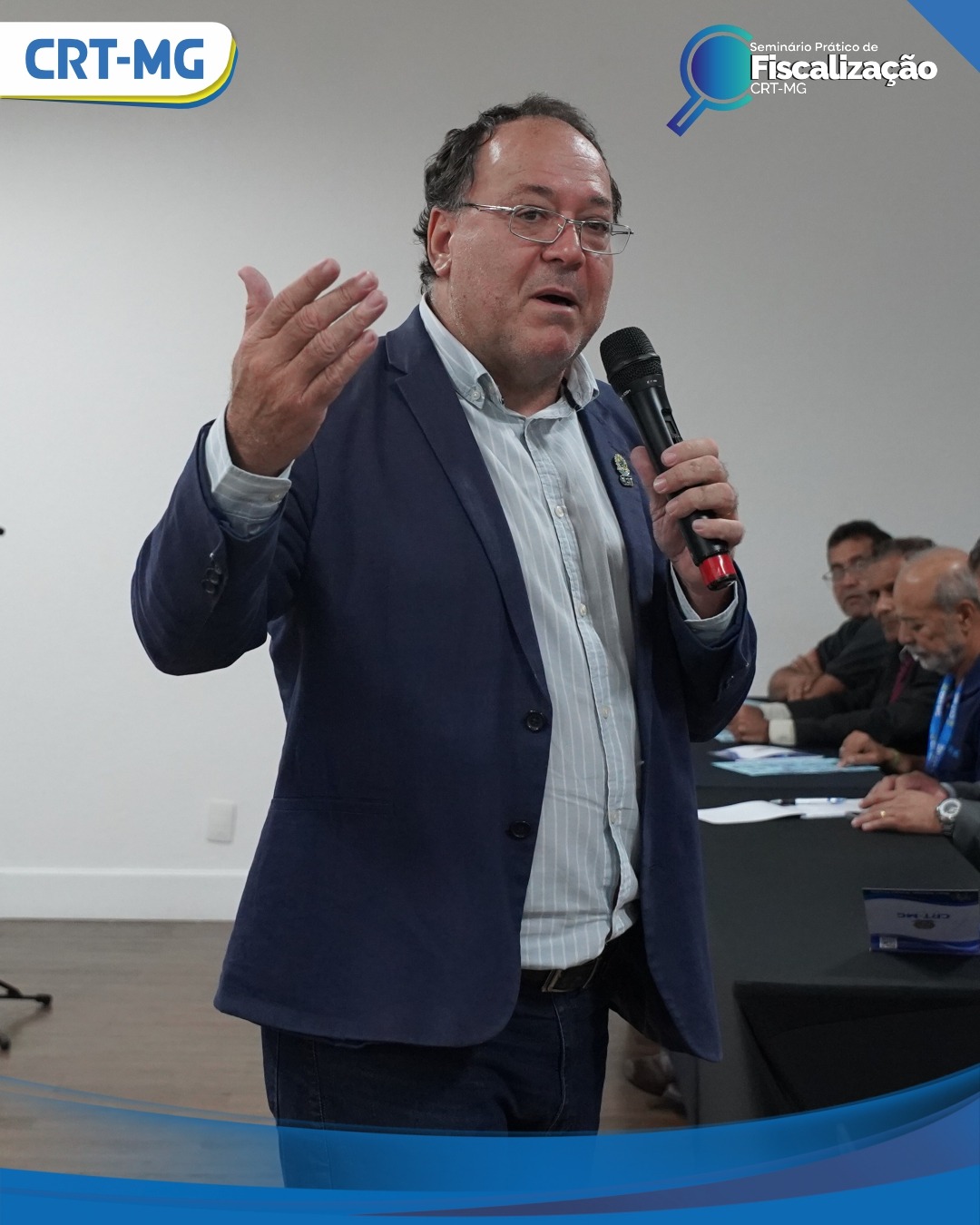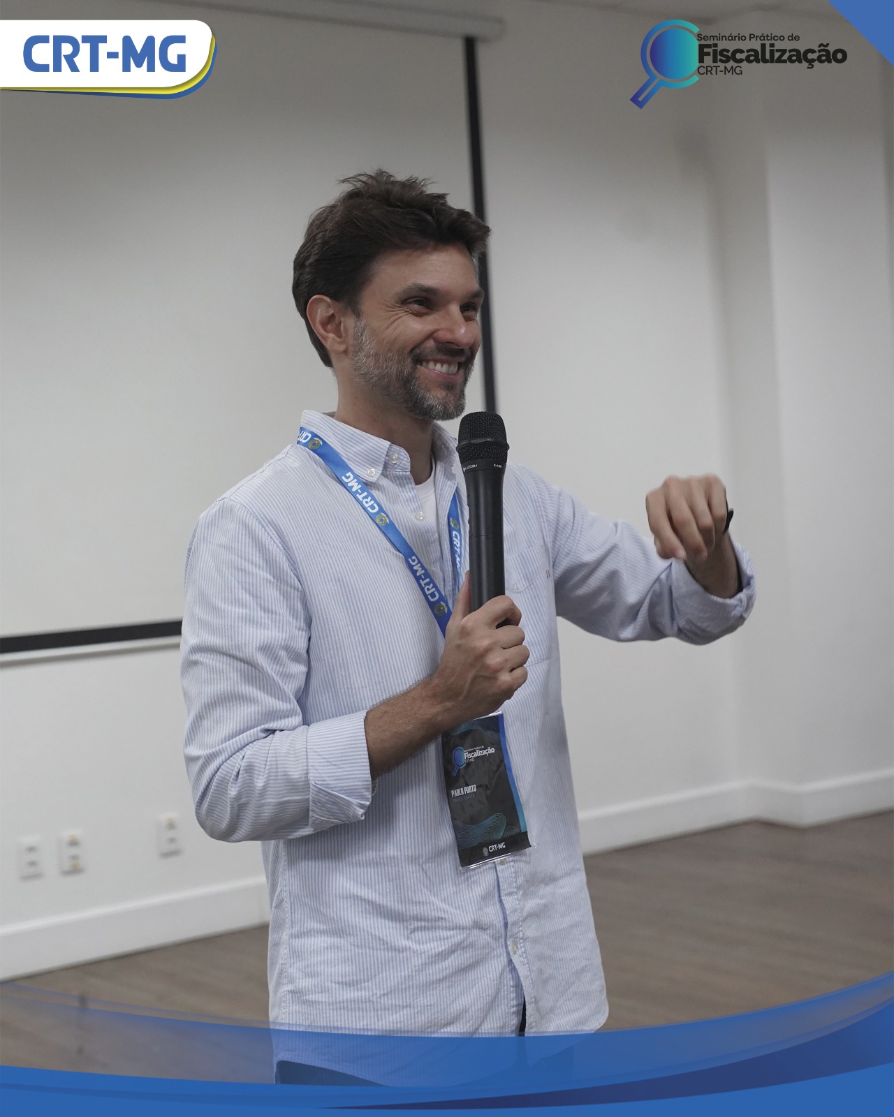 Com vasta experiência e profundo domínio no tema, o consultor Paulo Porto, Coordenador Técnico e Científico da Conferência Nacional dos Conselhos Profissionais, foi o responsável por ministrar duas palestras na sexta-feira (21), no segundo e último dia do Seminário Prático de Fiscalização do CRT-MG.